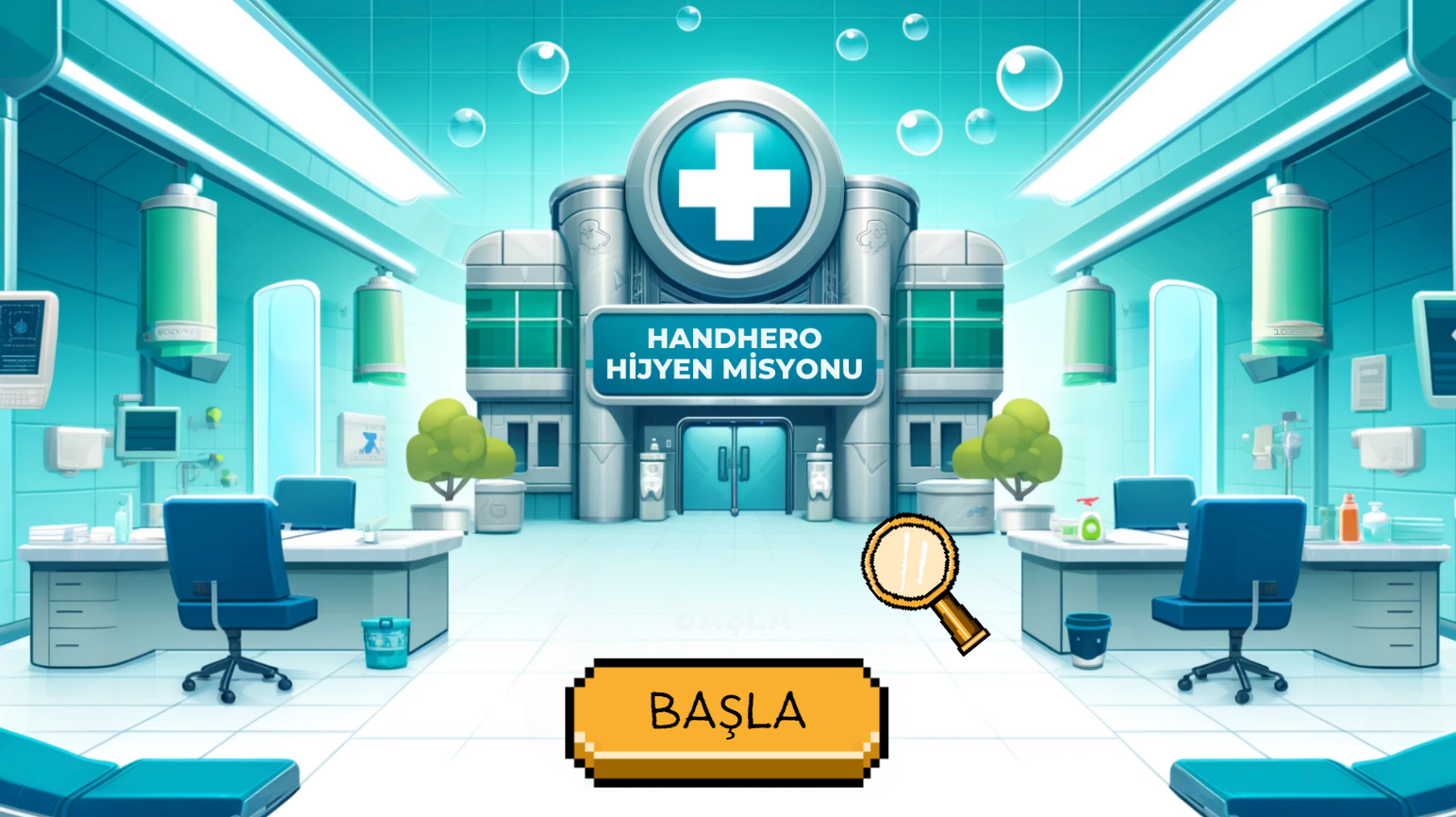 Oyunlaştırılmış ciddi oyun tarzında 2d tüm platformlarda oynanan hastalar için El Hijyeni oyunumuz.